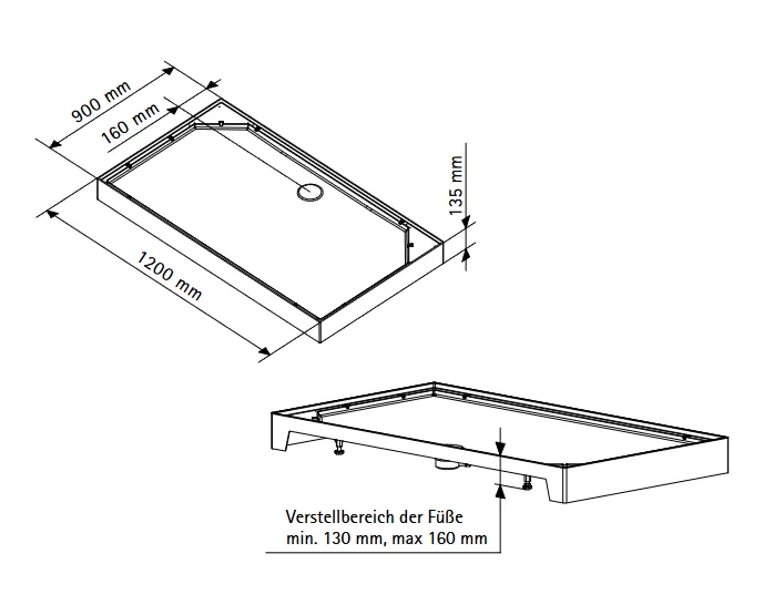 1200 mm - Dimensions (droite) 900 mm