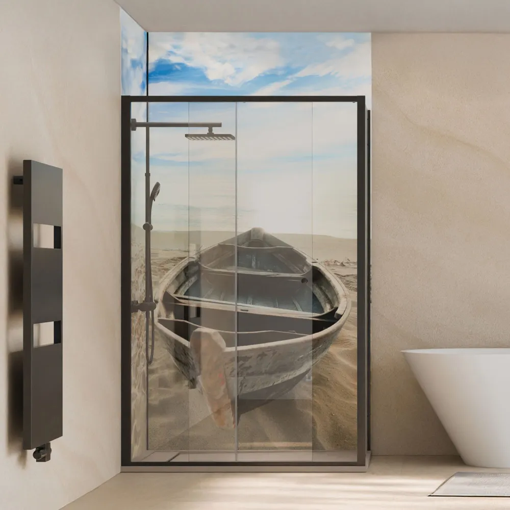 Lot de 2 panneaux muraux + 3 profilés, 90 x 210 cm, 1 DécoDesign PHOTO bateau + 1 panneau blanc à combiner (644)