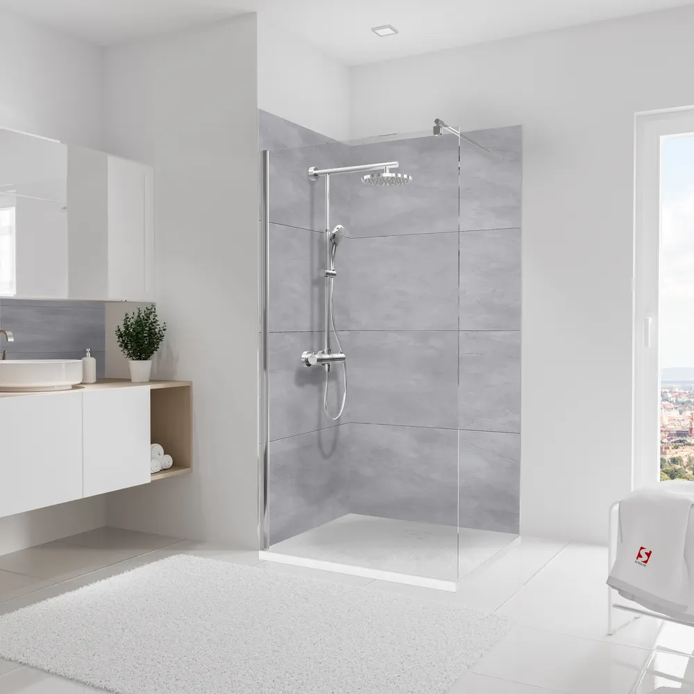 Pratique : revêtement ultra-fin de 3 mm à poser directement sur votre ancien carrelage ou sur le mur nu. Idéal pour une salle de bain neuve ou en rénovation.