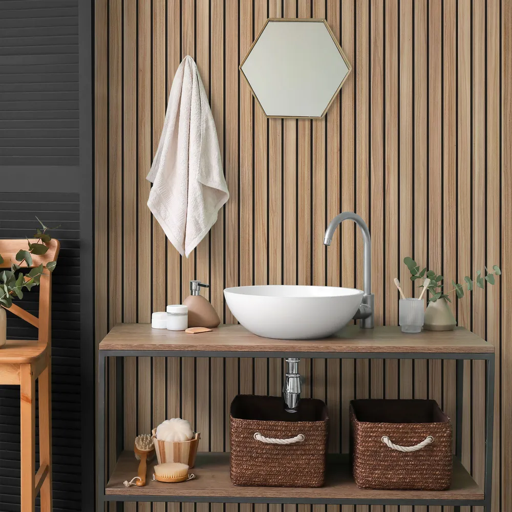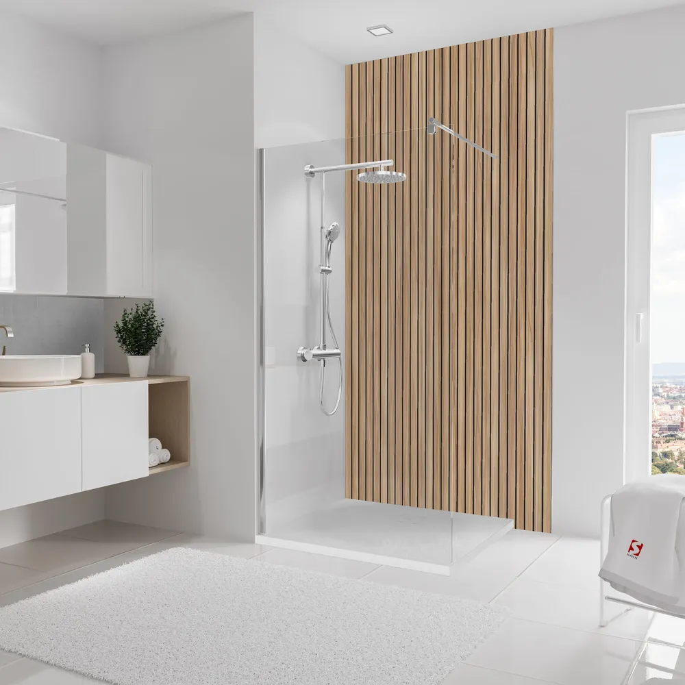 Pratique : revêtement ultra-fin de 3 mm à poser directement sur votre ancien carrelage ou sur le mur nu. Idéal pour une salle de bain neuve ou en rénovation.