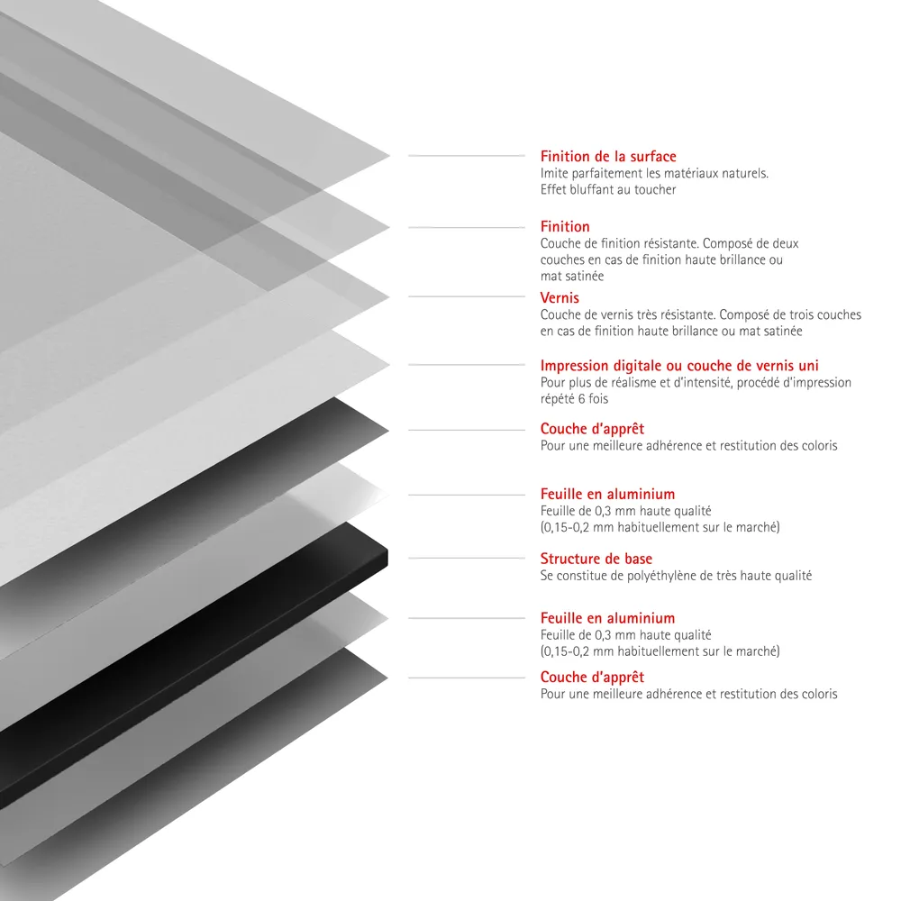 Décor : surface mate à léger relief. Effet matière très réaliste. Rendu esthétique et tendance.