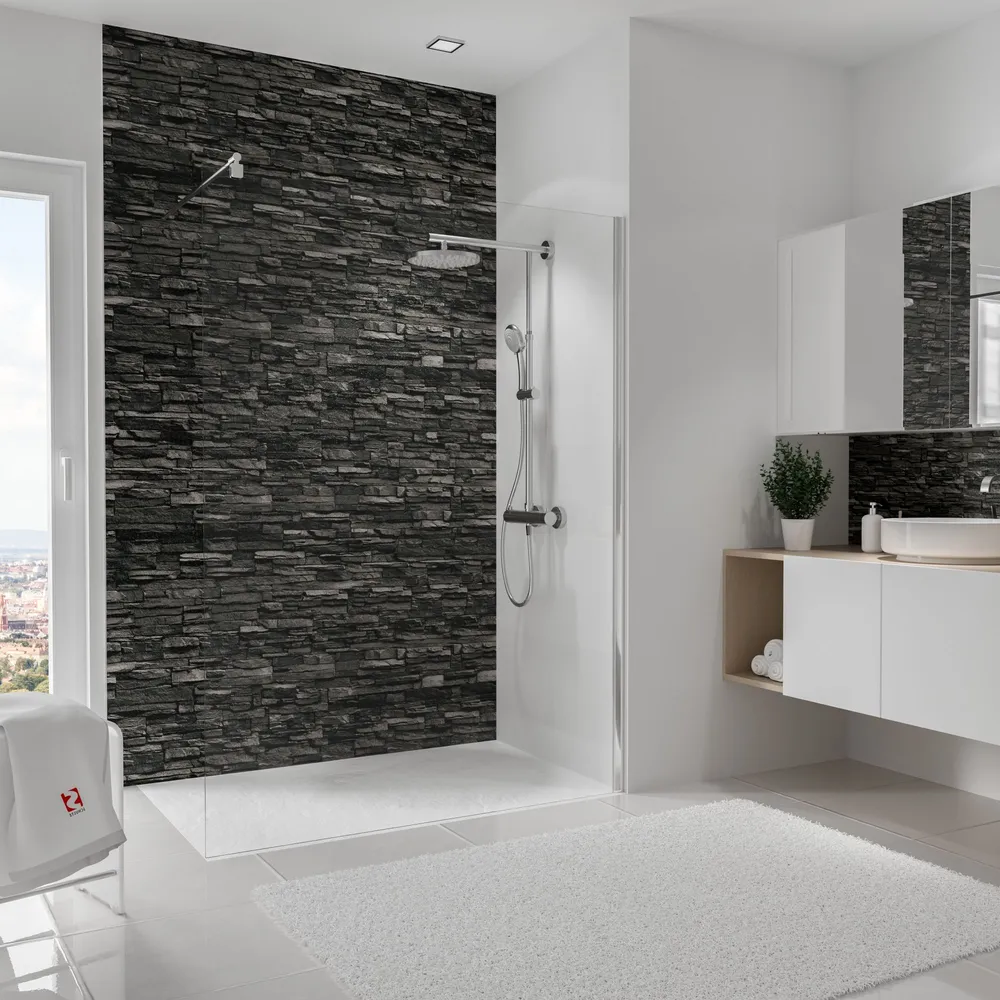 Pratique : revêtement ultra-fin de 3 mm à poser directement sur votre ancien carrelage ou sur le mur nu. Idéal pour une salle de bain neuve ou en rénovation.