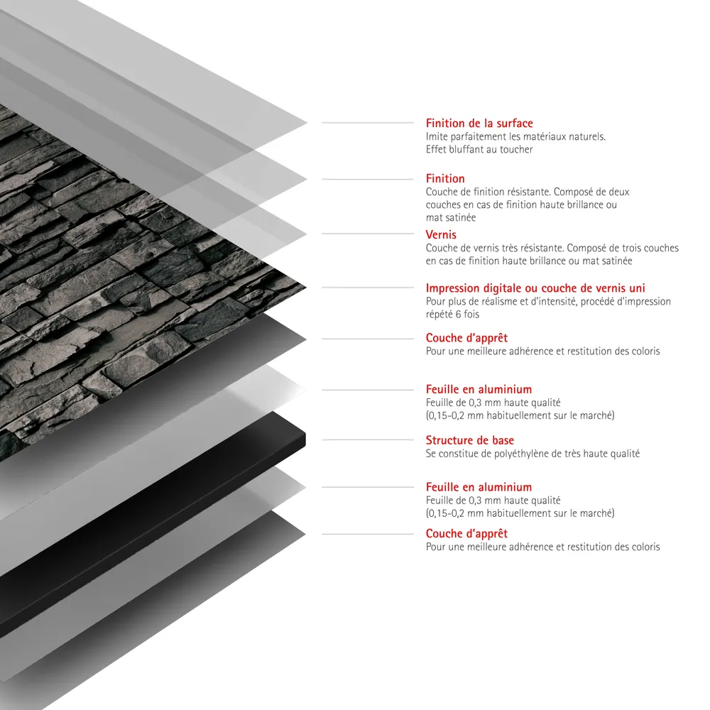 Matériau de qualité : composite d’aluminium résistant aux UV, aux chocs et rayures. Ne se décolore pas.