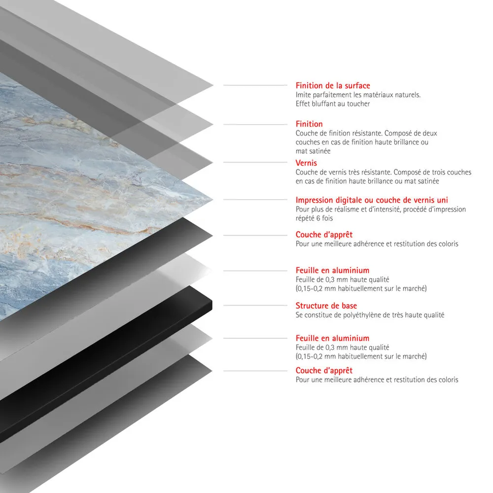 Matériau de qualité : composite d’aluminium résistant aux UV, aux chocs et rayures. Ne se décolore pas.