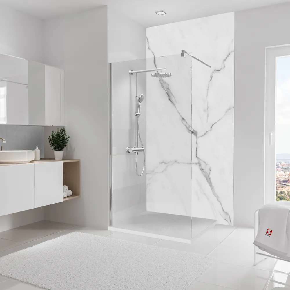 Pour aménager ou rénover votre espace douche rapidement et à moindre coût, le panneau mural de salle de bains constitue une solution moderne, pratique et esthétique. Étanche et sans rupture apparente, il se pose facilement sur un ancien carrelage, une plaque de plâtre ou tout autre support compatible. Proposé dans de nombreux décors, nos revêtements Decodesign s’intègrent harmonieusement à tous les styles d’intérieur et peuvent également être utilisés comme crédence de cuisine ou comme habillage mural décoratif dans d’autres pièces de la maison (hall d’entrée, buanderie, chambre…).