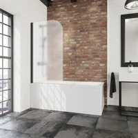 Pare-baignoire, 1 volet pivotant, 800 mm, 1400 mm, Noir mat, Sablé mat anticalcaire