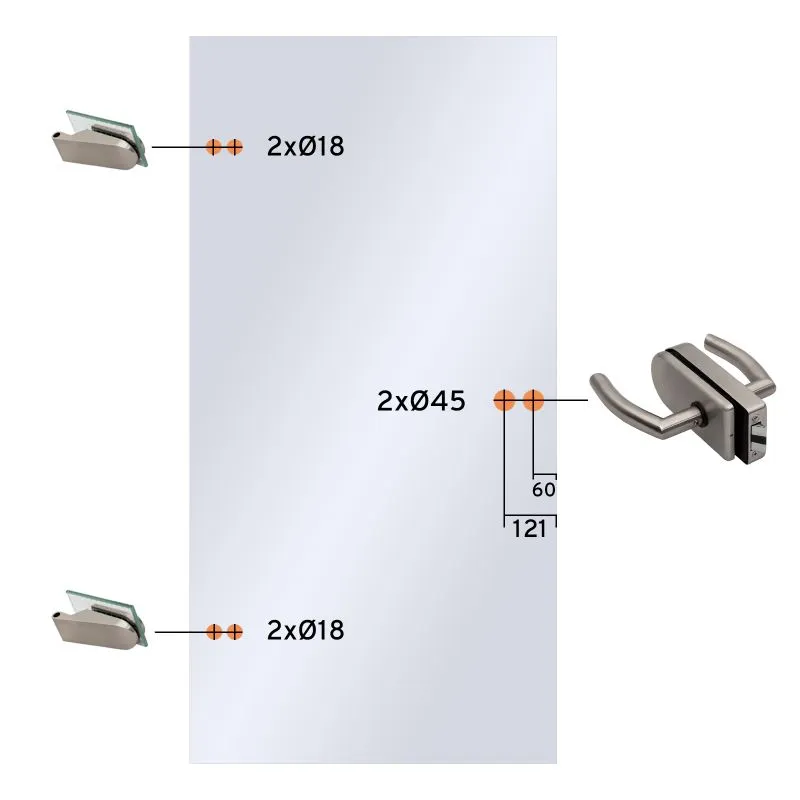 Convient aux portes pivotantes en verre de 8 ou 10 mm avec perçage studio, DIN gauche ou droite.