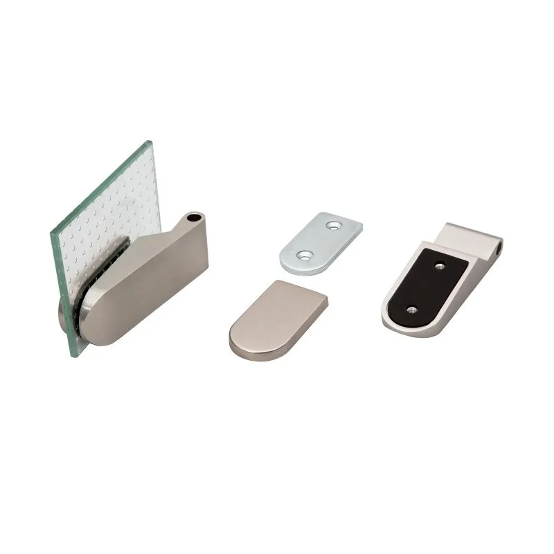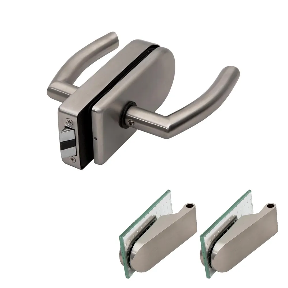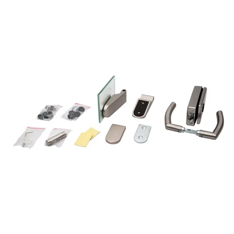 Serrure de porte en verre avec couvercle en acier inoxydable, loquet silencieux et poignée guidée en PTFE