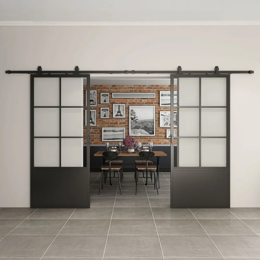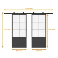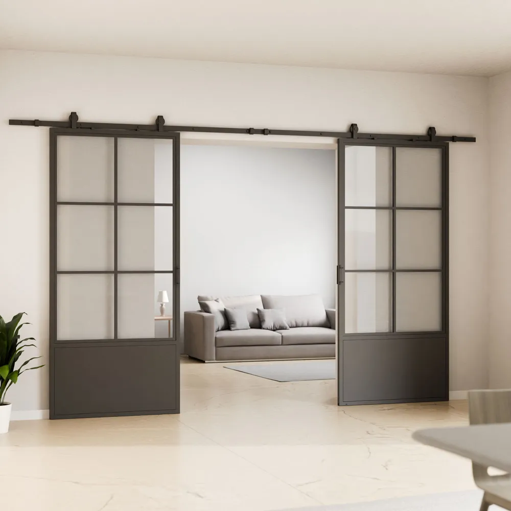 Double porte coulissante intérieure en verre, porte vitrée 180 x 215 cm, style verrière, double amortisseur Softclose