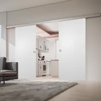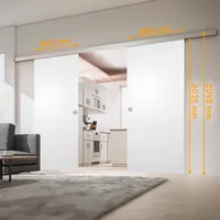 Double porte coulissante pleine 176 x 203 cm, en bois blanc, poignée carrée