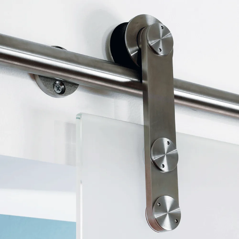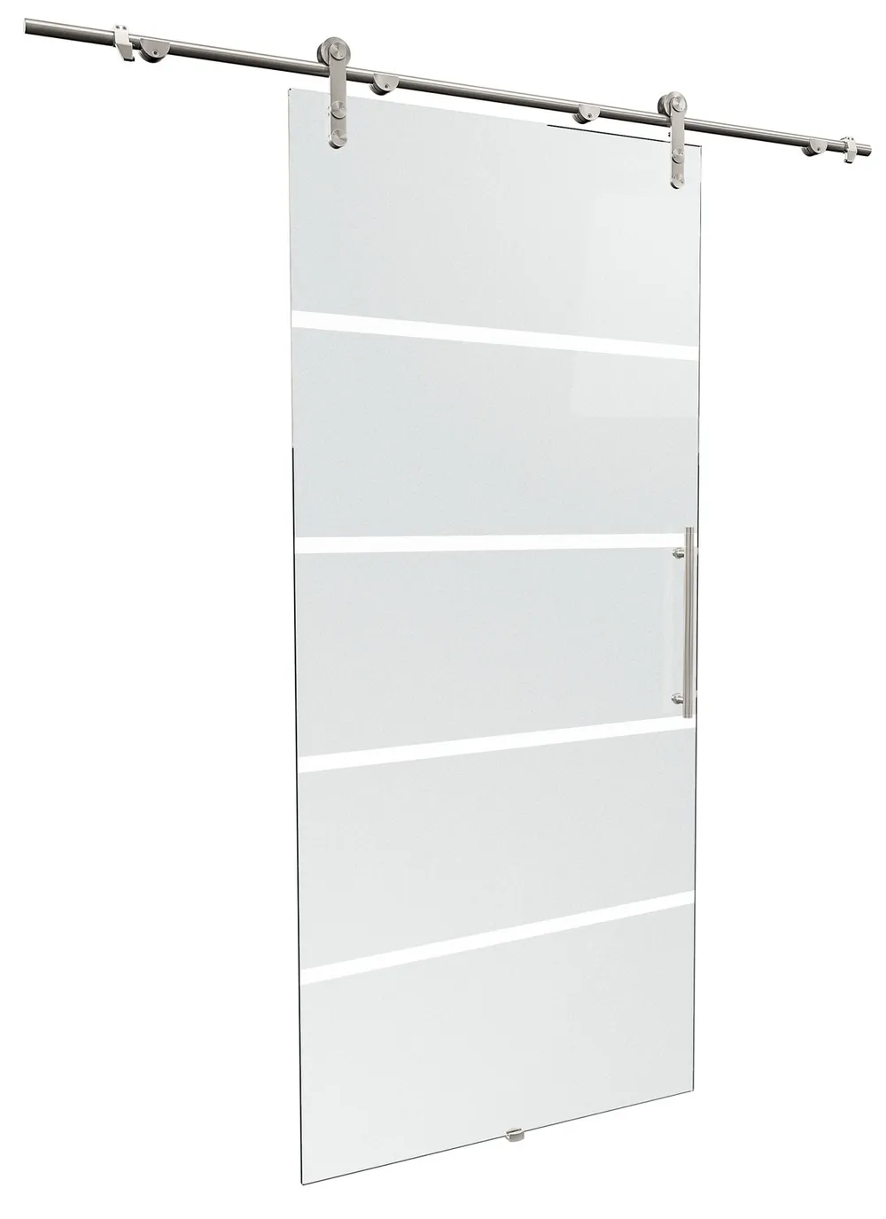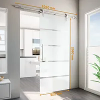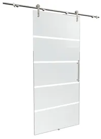 Porte coulissante inérieure en verre, 90x208 cm, décor dépoli, rail apparent arrondi, poignée barre