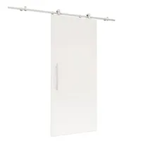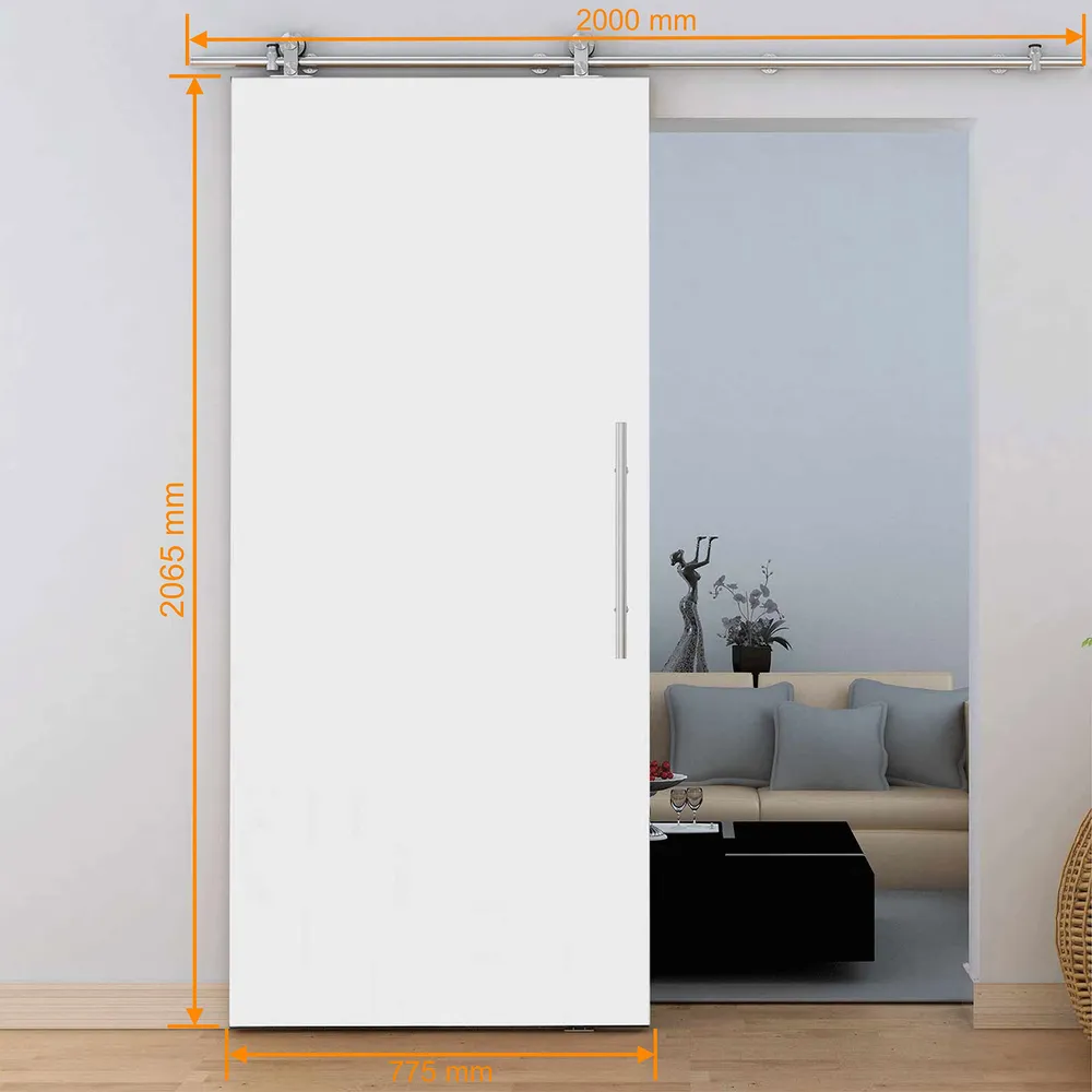 Porte coulissante intérieure en bois, 77x206cm, porte intérieure pleine, bois blanc, rail apparent - poignée barre