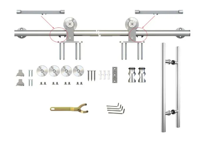 - Livré avec Rail de 2m redécoupable, Poignée, Guide au sol, Système de fixation