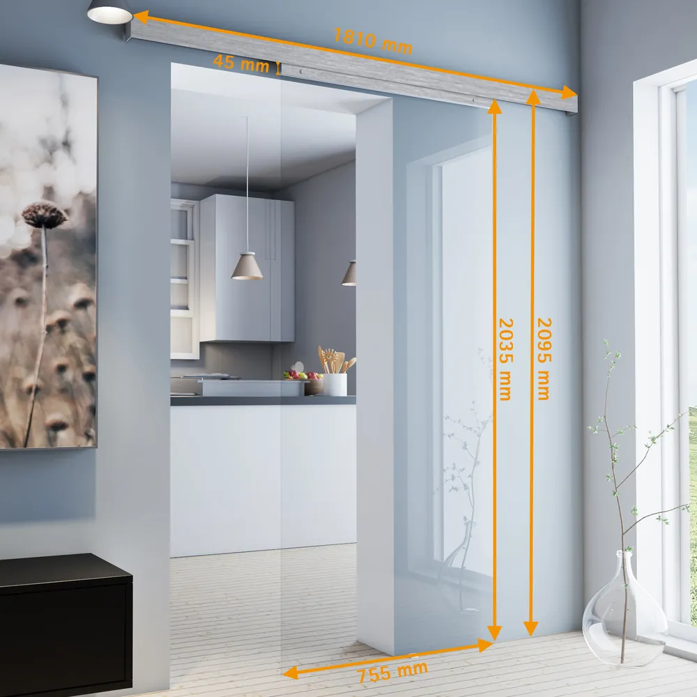 Porte coulissante intérieure en verre, 75 x 203 cm, verre transparent, poignée bouton