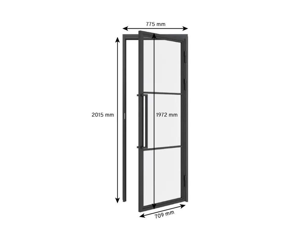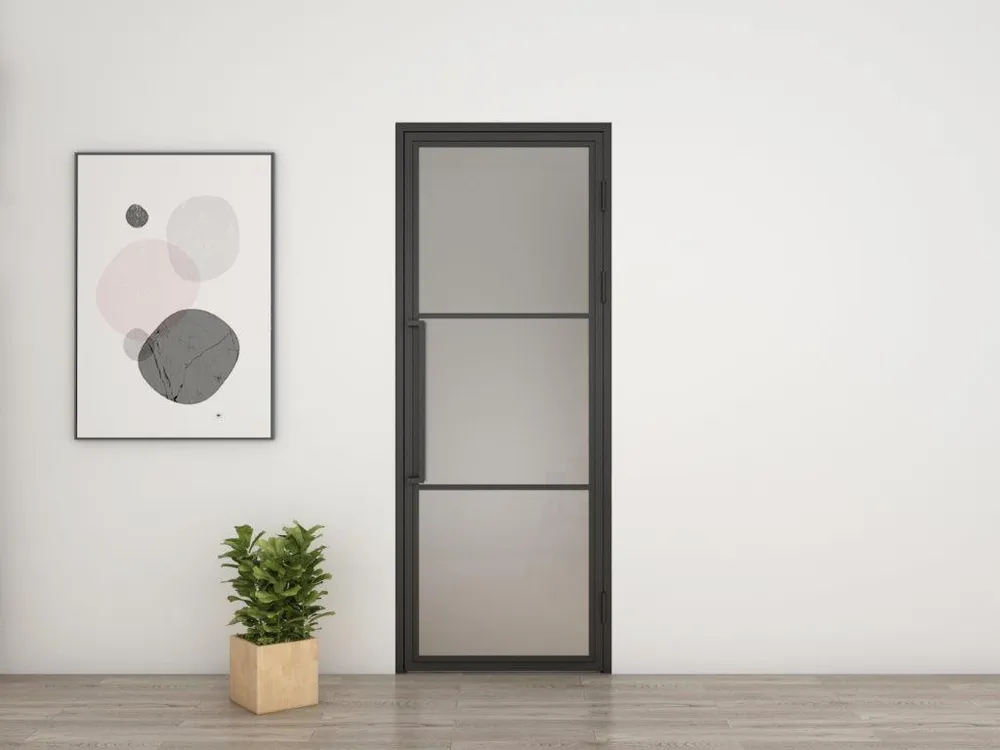 Porte intérieure en verre 71 x 197 cm, bloc porte vitré loft, verre opaque satiné, ouverture vers la droite
