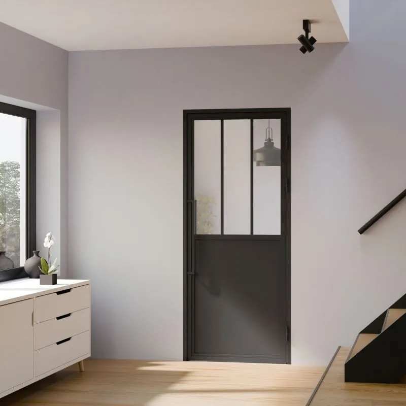 Porte intérieure en verre 83 x 204 cm, bloc porte vitré atelier, ouverture tirant droite