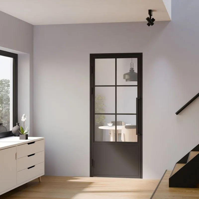 Porte intérieure en verre 83 x 204 cm, bloc porte vitré atelier, ouverture tirant gauche