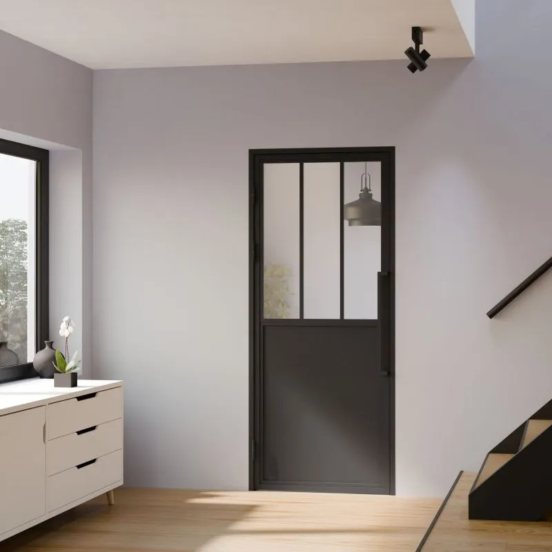 Porte intérieure en verre 83 x 204 cm, bloc porte vitré atelier, ouverture tirant gauche