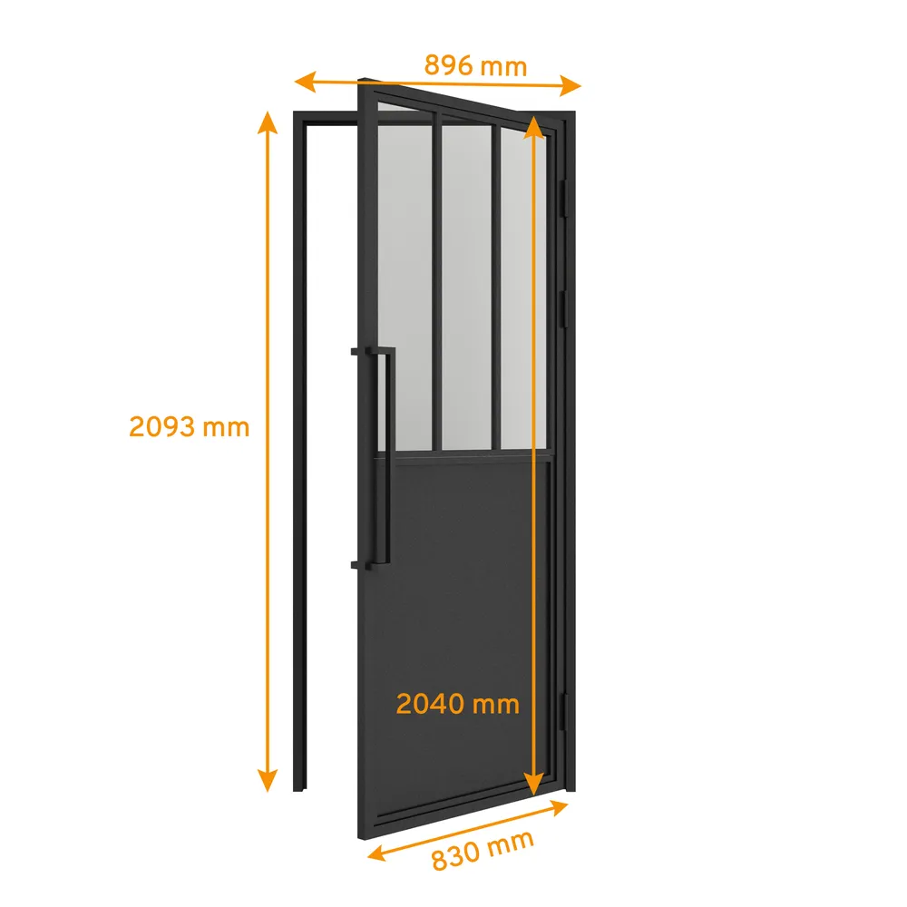 Porte intérieure en verre 83 x 204 cm, bloc porte vitré atelier, ouverture vers la droite