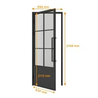 Porte intérieure en verre 83 x 211 cm, bloc porte vitré atelier, ouverture vers la gauche