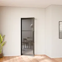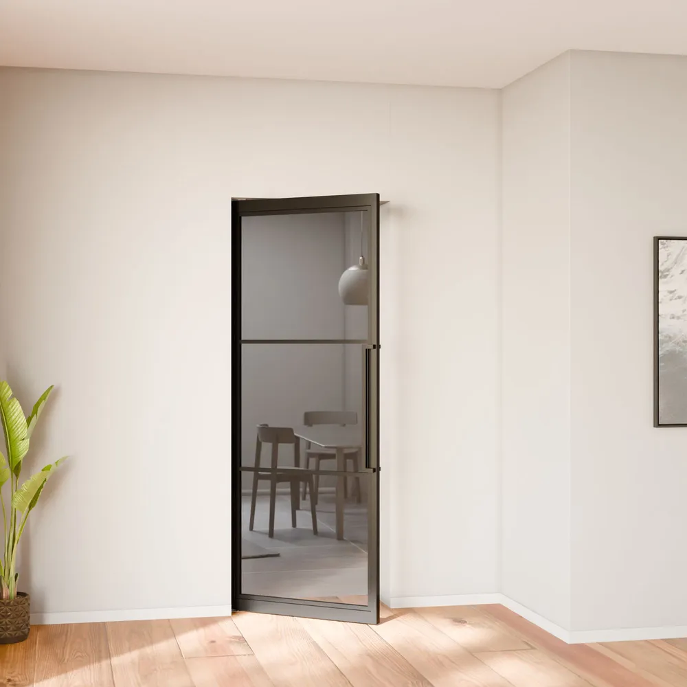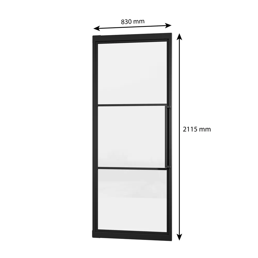 Porte intérieure loft en verre 83 x 211 cm, bloc-porte battant vitré, transparent, style verrière atelier 3 carreaux, noir