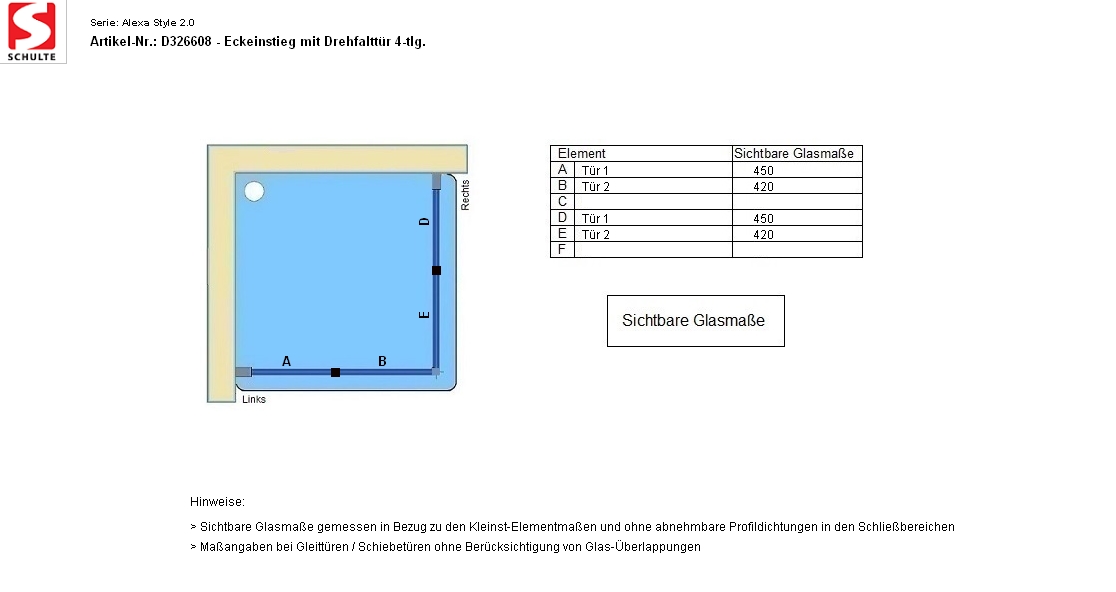- Sichtbare Glasmaße - Artikel D326608