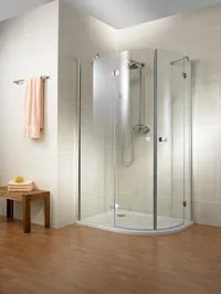 - Modèle Paroi de douche arrondie avec 2 portes pivotantes sur parois fixes, 4 éléments