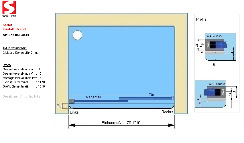 La forme de la charnière et la plage de réglage peuvent faire une différence décisive dans le dimensionnement. En cas de doute, veuillez contacter notre service clientèle.