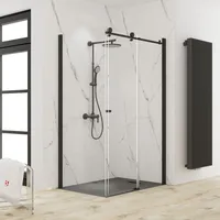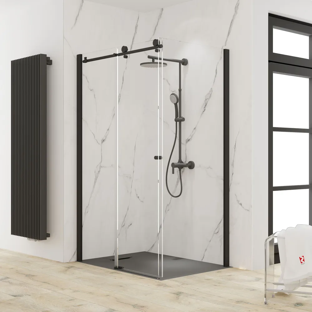 MasterClass - Porte de douche coulissante avec paroi latérale, 1000x800 mm, 2000 mm, Noir mat, Transparent anticalcaire