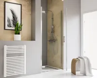 Porte pivotante en niche (charnières battantes)Solution classique par excellence, cette porte de douche pivotante séduit par sa fonctionnalité et son design minimaliste. Grâce aux charnières battantes avec système autolevant, vous pouvez ouvrir la porte dans les deux sens. Le verre de 8 mm est traité anticalcaire. Il vous facilite ainsi le nettoyage au quotidien. Pourquoi cette porte de douche pivotante ? - Grande ouverture : accès facile - Verre de sécurité 8 mm : qualité Made in Germany - Système autolevant de la porte : ouverture facile, pas de frottement au sol - Ouverture pratique dans les deux sens : pas d’égouttement dans la pièce grâce aux charnières battantes - Traitement anticalcaire Fixil : effet perlant pour un entretien facile - Verre transparent : pour plus de luminosité - Do it yourself : facile à monter, notice de montage détaillée - Entretien facile : charnières en affleurement au verre. Idéal lors du nettoyage avec une raclette - Douche fermée : garde la chaleur et augmente votre bien-être - Étanchéité maximale : joints de qualité - Installation sur receveur ou carrelage Schulte, c'est : - Une société familiale fondée en 1921 - Des produits durables Made in Germany - Un savoir-faire reconnu en Europe - Votre fabricant pour toute solution sur-mesure - Des concepts fonctionnels pour tous les budgets - Une livraison rapide - Un service après-vente première classe - Et des clients satisfaits…