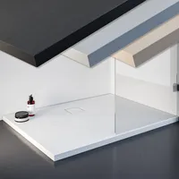 Receveur de douche 90 x 90 cm, rectangulaire, résine minérale, effet pierre blanche