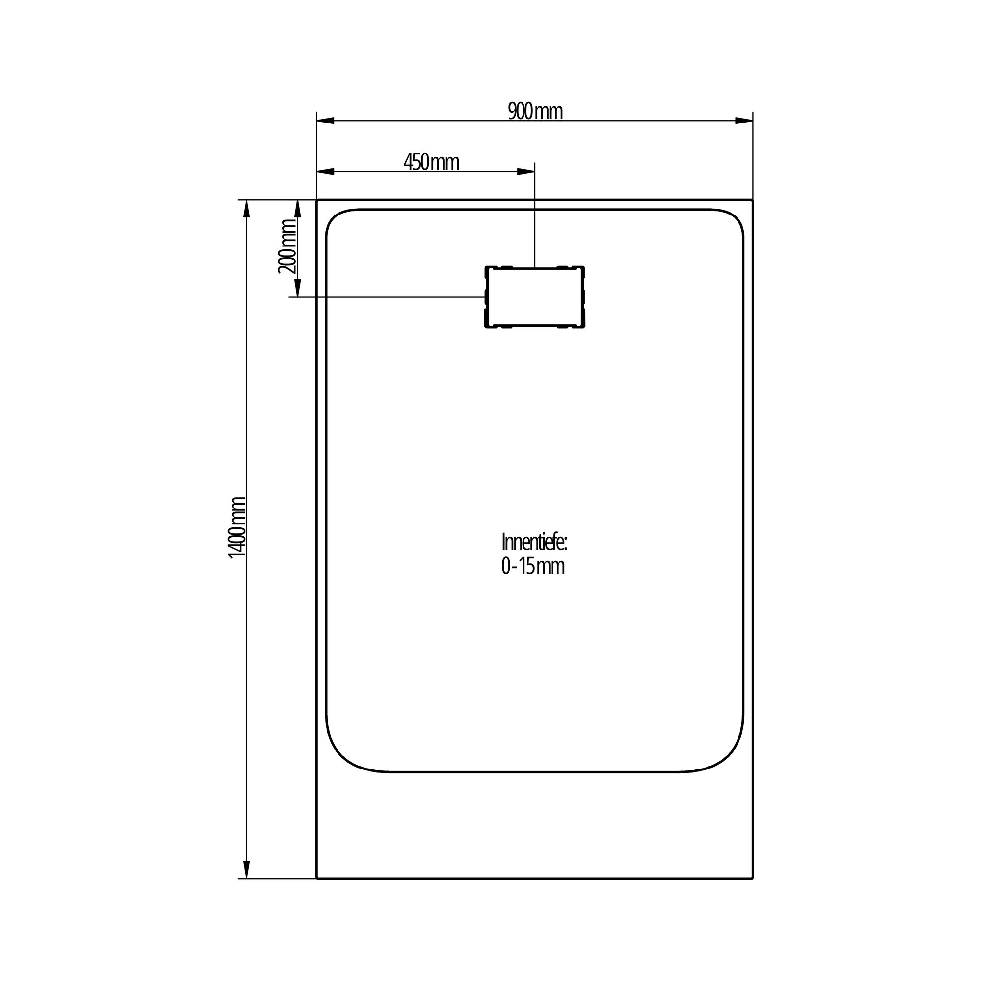 Receveur de douche 90 x 140 cm, rectangulaire, effet pierre, blanc mat, ultra-léger
